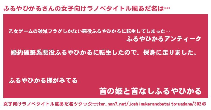 | 胡散臭い通販商品みたいなあだ名 | 『世界中を虜にした100年もののヴィンテージワイン…その名も「ふるやひかる」』 |