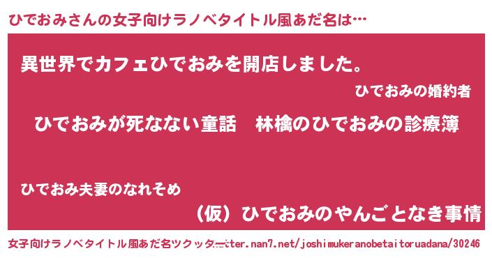| 男性向けラノベタイトル風あだ名 | 『魔弾の王とひでおみ』『ひでおみの憂鬱』 |