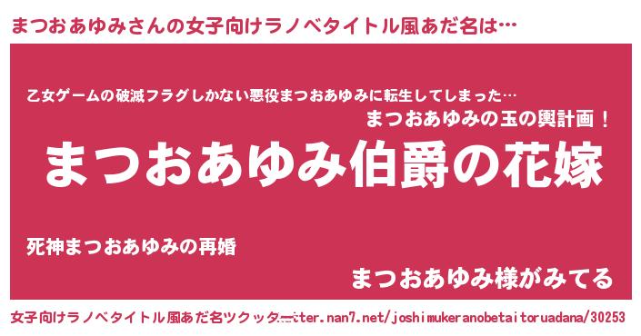 | ファンタジー風あだ名 | 『エターナルマツオアユミー』 |
