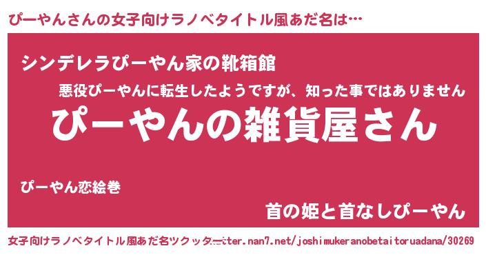 | 男性向けラノベタイトル風あだ名 | 『やはりぴーやんの青春ラブコメはまちがっている 』 |