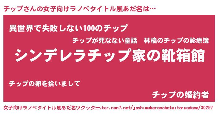 | 胡散臭い通販商品みたいなあだ名 | 『絶対に幸福をもたらす健康食品…その名も「チップ」』 |
