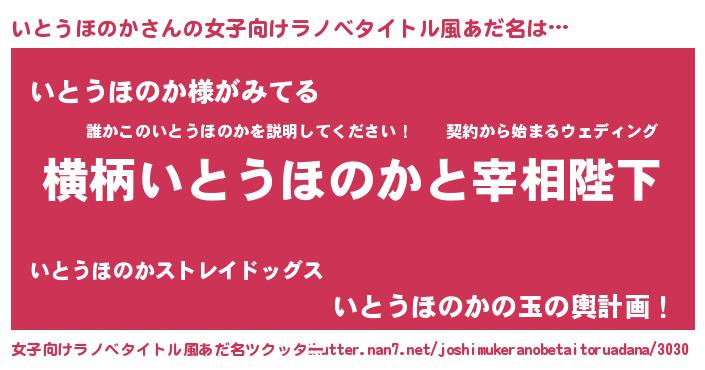 | 男性向けラノベタイトル風あだ名 | 『いとうほのかに滅ぼされるだけの簡単なお仕事です』 |