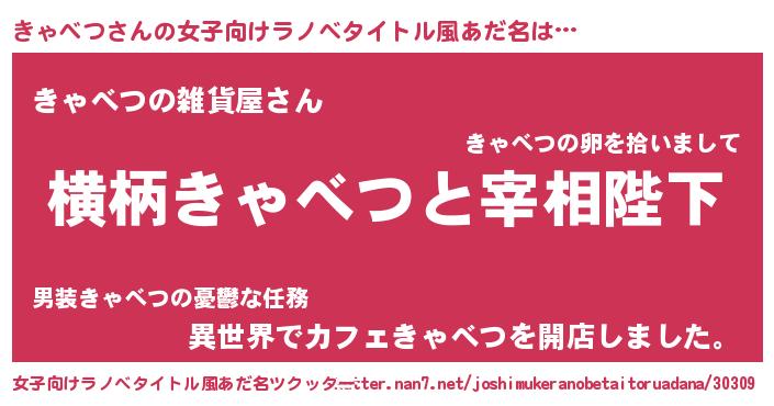| 男性向けラノベタイトル風あだ名 | 『きゃべつに滅ぼされるだけの簡単なお仕事です』 |