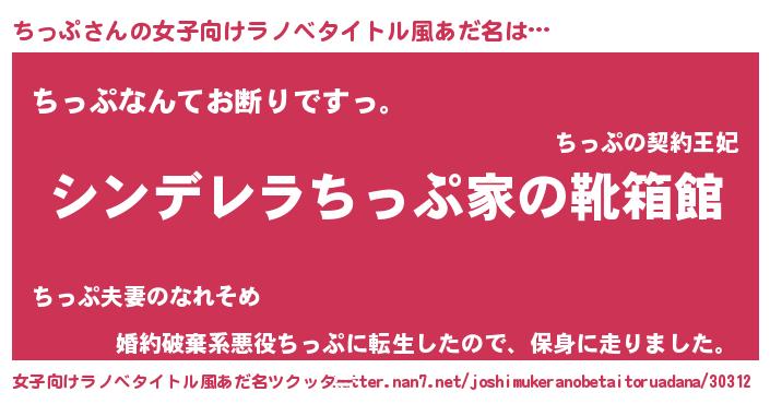 | 男性向けラノベタイトル風あだ名 | 『緋弾のチップ』『魔法科高校のちっぷ』 |