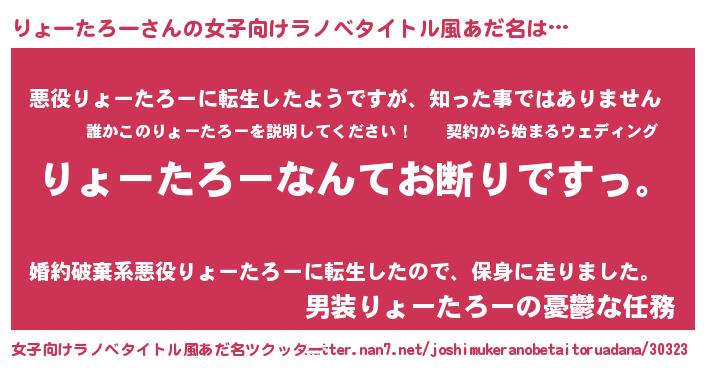 | 胡散臭い通販商品みたいなあだ名 | 『ガンによく効く冬虫夏草…その名も「りょーたろー」』 |