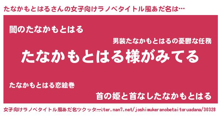 | 男性向けラノベタイトル風あだ名 | 『たなかもとはるの嫁は女の子じゃないと思った?』 |