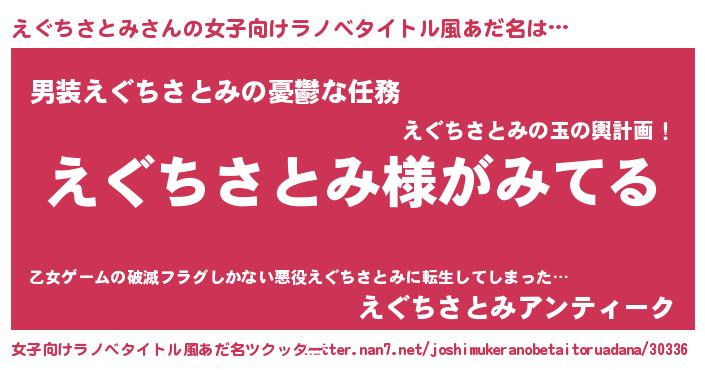 | 欧米人風あだ名 | 『ウサインえぐちさとみ』 |