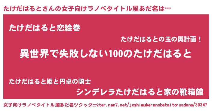 | 男性向けラノベタイトル風あだ名 | 『たけだはるとという概念が存在しない退屈な世界 』 |