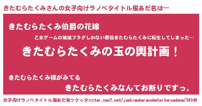 | 胡散臭い通販商品みたいなあだ名 | 『運命の人と巡り会える高級そうな壺…その名も「きたむらたくみ」』 |