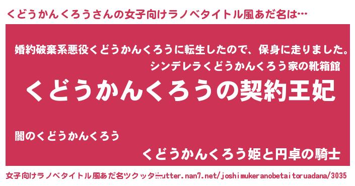 | 意味不明あだ名 | 『永久保存くどうかんくろう』 |