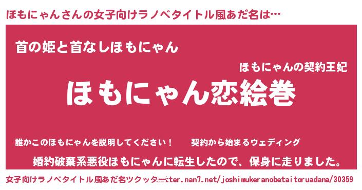 | 男性向けラノベタイトル風あだ名 | 『ノーゲーム・ノーホモニャン』 |