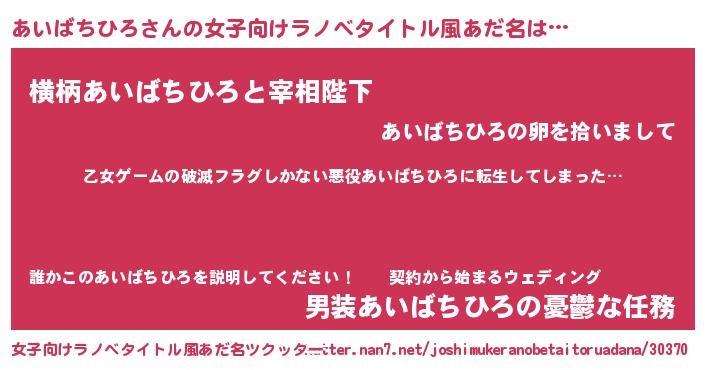 | 男性向けラノベタイトル風あだ名 | 『魔弾の王とあいばちひろ』 |