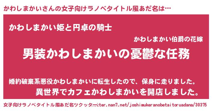 | 胡散臭い通販商品みたいなあだ名 | 『億万長者になれるブレスレット…その名も「かわしまかい」』 |