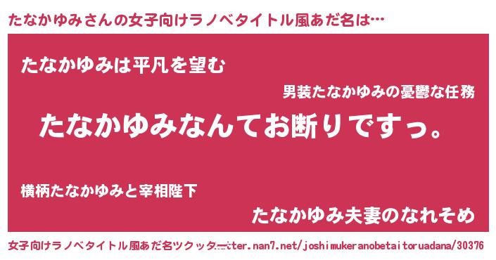 | ポケモン風あだ名 | 『タナセウス』『ヒタナカユミ』 |