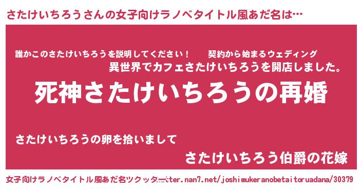 | 男性向けラノベタイトル風あだ名 | 『ノーゲーム・ノーサタケイチロウ』 |