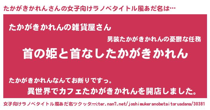 | 男性向けラノベタイトル風あだ名 | 『はたらくたかがきかれんさま!』 |