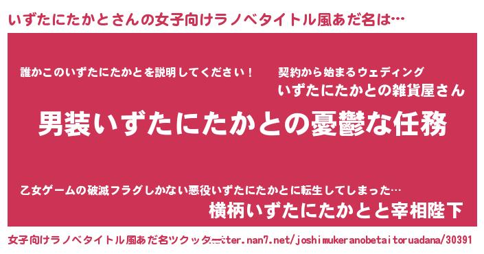 | 男性向けラノベタイトル風あだ名 | 『うちのいずたにたかとが世界を掌握している!』 |