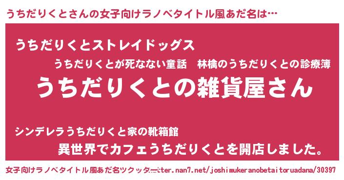 | 男性向けラノベタイトル風あだ名 | 『やはりうちだりくとの青春ラブコメはまちがっている 』 |