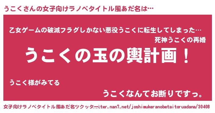 | ヒーロー風カッコイイあだ名 | 『仮面ウコダー』『サイバー戦士ウコク』 |