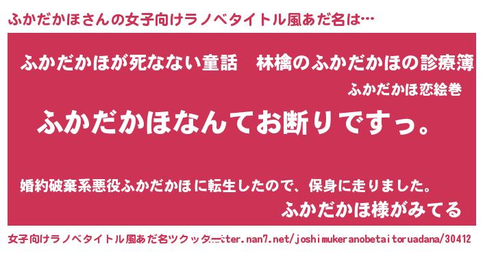 | ヒーロー風カッコイイあだ名 | 『超時空戦士フカダカホ』『仮面フカダー』 |