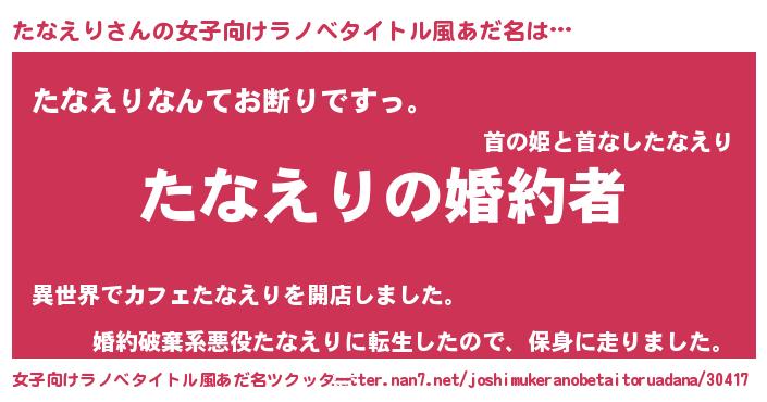 | ファンタジー風あだ名 | 『エターナルタナエリー』『ゼタナトゥ』 |