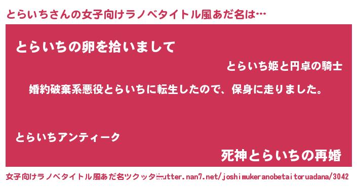 | ヒーロー風カッコイイあだ名 | 『暗黒騎士トラ』『慈愛の使者とらいち』 |