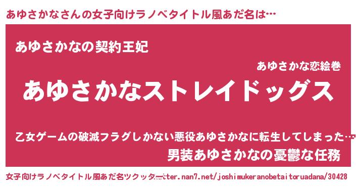 | ファンタジー風あだ名 | 『ゼアユトゥ』『アユディッシュ』 |