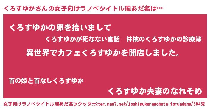 | 男性向けラノベタイトル風あだ名 | 『誰もが恐れるあのくろすゆかが、ぼくの専属メイドになるようです。』 |