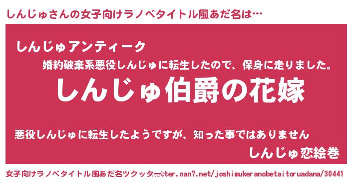 | 男性向けラノベタイトル風あだ名 | 『やはりしんじゅの青春ラブコメはまちがっている 』 |