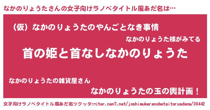 | 胡散臭い通販商品みたいなあだ名 | 『必ず成功するブレスレット…その名も「なかのりょうた」』 |