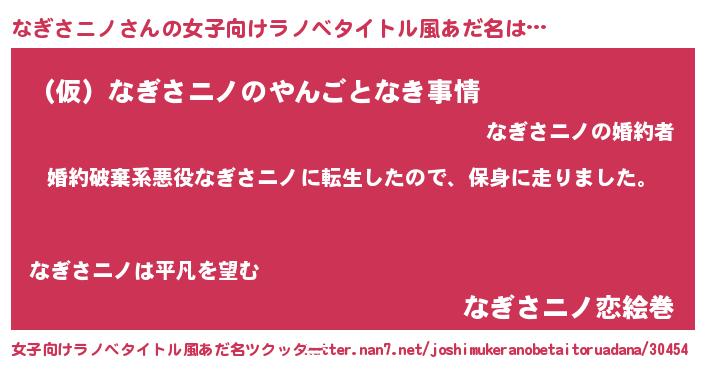 | 男性向けラノベタイトル風あだ名 | 『ナギサニノスレイヤー』 |