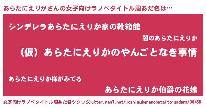 | 男性向けラノベタイトル風あだ名 | 『あらたにえりかの憂鬱』 |