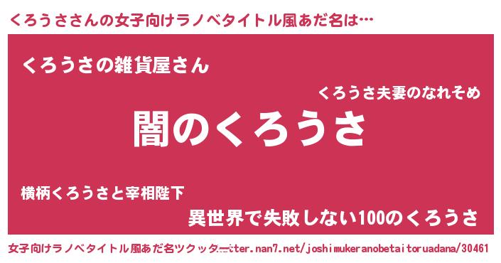 | 男性向けラノベタイトル風あだ名 | 『Re:くろうさから始める異世界生活』 |