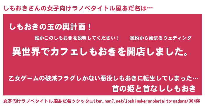 | ヘコむあだ名 | 『しもおき(苦笑)』『しももー』 |