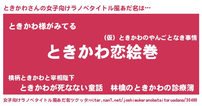 | 可愛いあだ名 | 『ときちゅっちゅ』『とっきぃー』 |