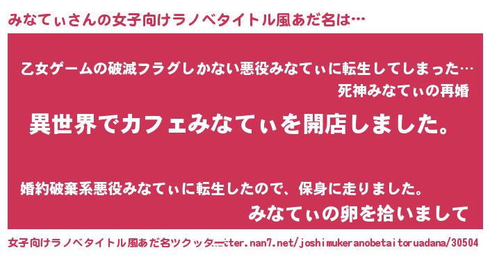 | 意味不明あだ名 | 『永久保存みなてぃ』 |