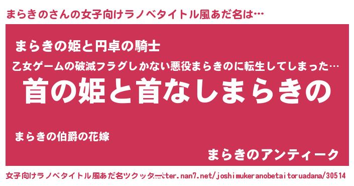 | 胡散臭い通販商品みたいなあだ名 | 『必ず成功するブレスレット…その名も「まらきの」』 |