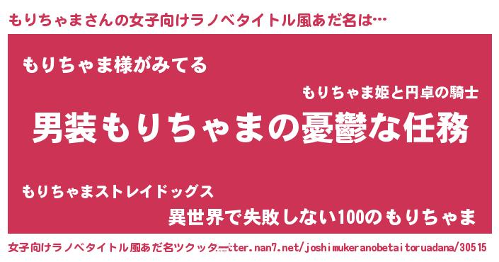 | ヘコむあだ名 | 『もりぷりん』『もりちゃま(笑)』 |