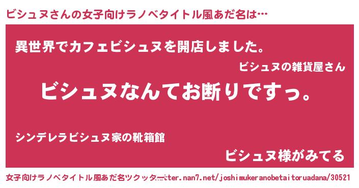 | ヘコむあだ名 | 『ビシュヌ(笑)』『ビシぷりん』 |