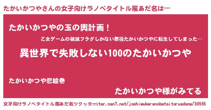 | 男性向けラノベタイトル風あだ名 | 『たかいかつやという概念が存在しない退屈な世界 』 |