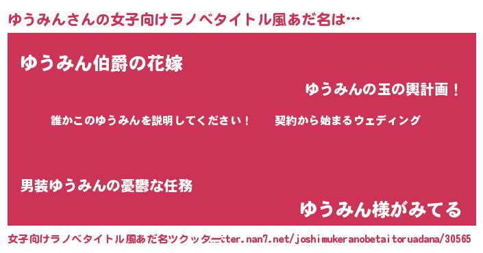 | 男性向けラノベタイトル風あだ名 | 『ユウミンアートオンライン』 |