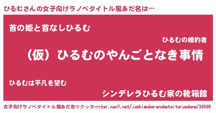 | 男性向けラノベタイトル風あだ名 | 『ひるむの憂鬱』『はたらくひるむさま!』 |