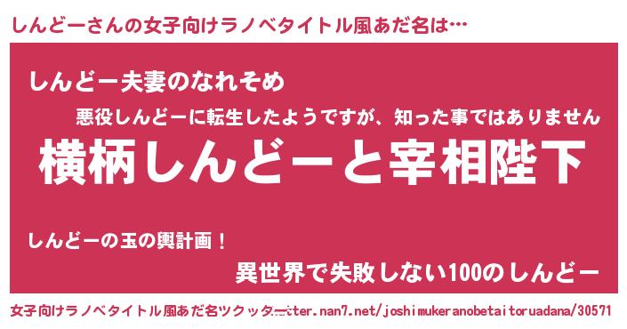 | 男性向けラノベタイトル風あだ名 | 『しんどーに滅ぼされるだけの簡単なお仕事です』 |