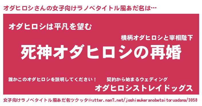 | 男性向けラノベタイトル風あだ名 | 『ノーゲーム・ノーオダヒロシ』 |