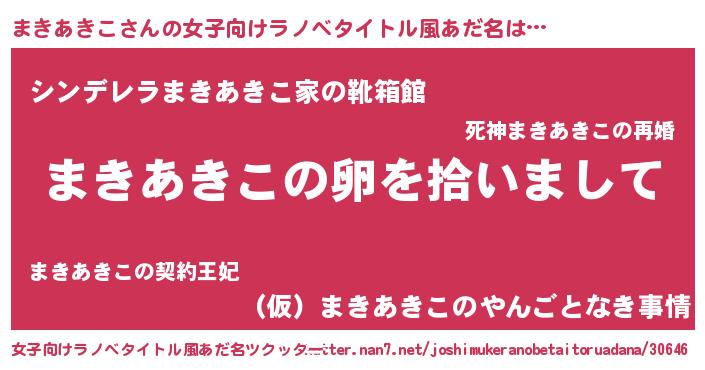 | 男性向けラノベタイトル風あだ名 | 『ダンジョンにまきあきこを求めるのは間違っているだろうか』 |