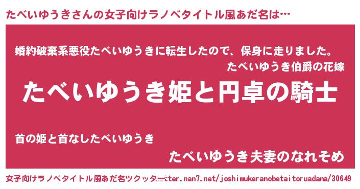 | 胡散臭い通販商品みたいなあだ名 | 『モテモテ間違いなし霊験あらたかなお札…その名も「たべいゆうき」』 |