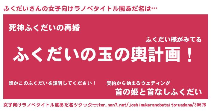 | 男性向けラノベタイトル風あだ名 | 『ふくだい~年齢イコール彼女いない歴の魔法使い~』 |