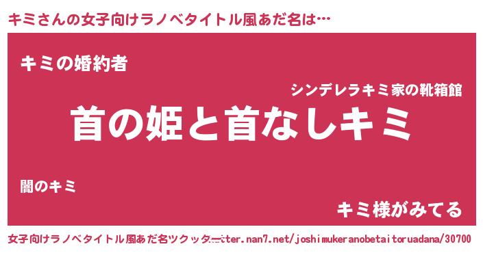 | 男性向けラノベタイトル風あだ名 | 『はたらくキミさま!』『緋弾のキミ』 |