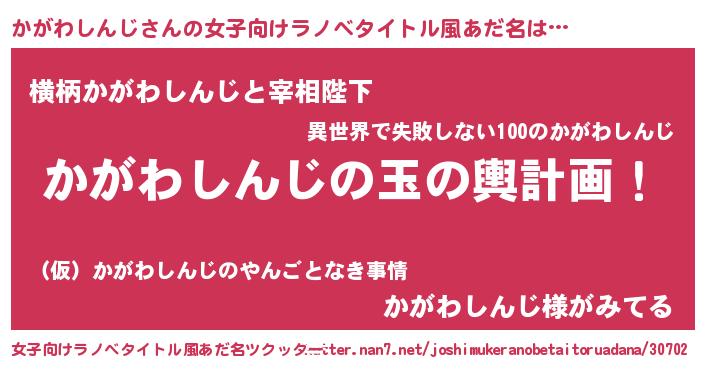 | ヘコむあだ名 | 『かがを』『かがわしんじ(震え声)』 |