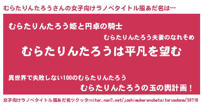 | 胡散臭い通販商品みたいなあだ名 | 『信頼と実績のネックレス…その名も「むらたりんたろう」』 |